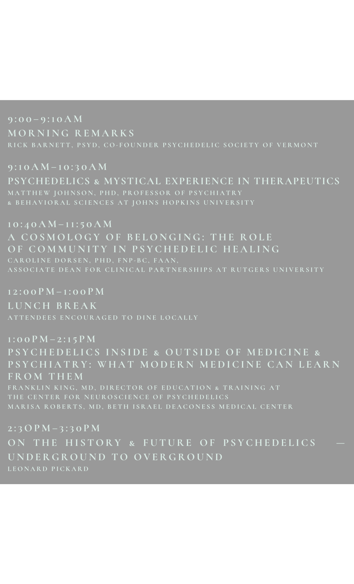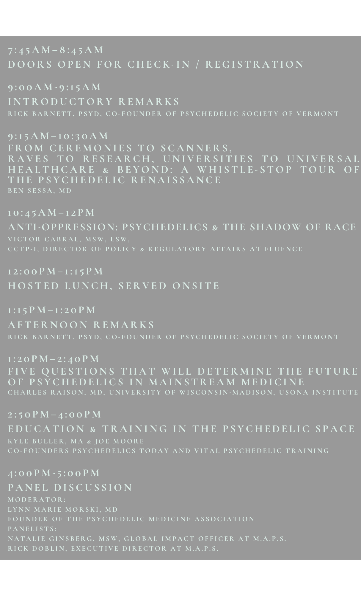 SUMMIT SCHEDULE: